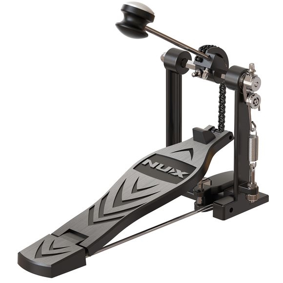 NUX DM-210 leveres med et stabilt rack og pedal, så sættet kan tilpasses den enkelte trommeslager og opsættes kompakt – perfekt til både hjemmet og undervisningslokalet.